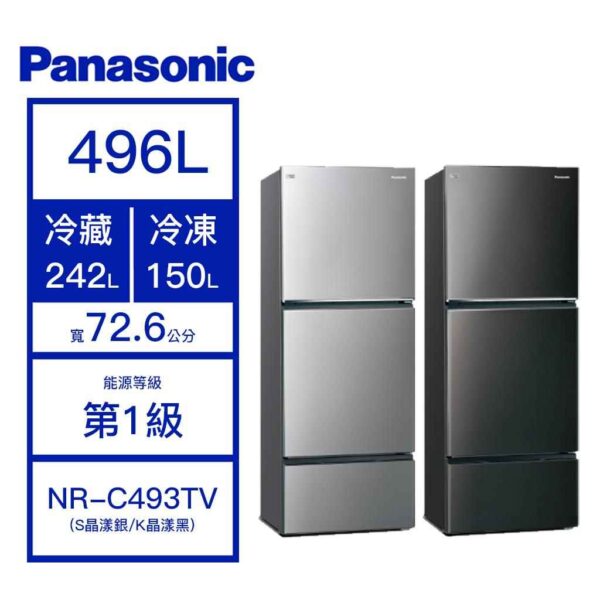 【結帳再x折】【含標準安裝】【Panasonic 國際】無邊框鋼板系列 496L 三門變頻冰箱 S晶漾銀 NR-C493TV