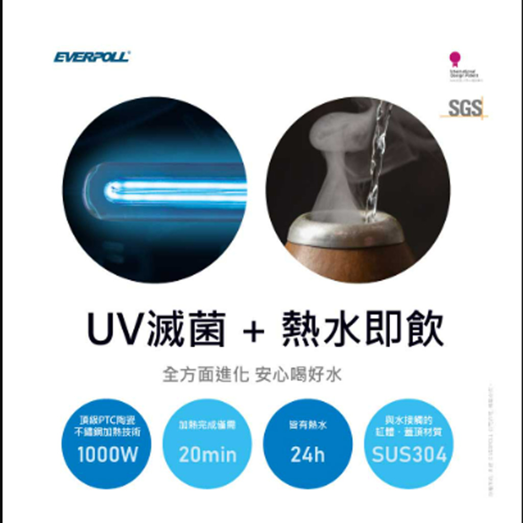 【結帳再x折】【含標準安裝】【愛科】廚下型雙溫UV觸控飲水機 EVB-298-E